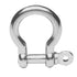 Our 316 Stainless Steel Bow Shackles are made with high corrosion resistance stainless steel. These Stainless Steel Bow Shackles have a 5 to 1 WLL which rates our Bow Shackle's WLL at 20% of its Ultimate Breaking Strength. The WLL is the maximum load that should ever be applied and is based on an in-line pull with no shockload. A competent person should make an assessment of the conditions of use to determine the maximum load allowed. Our Stainless Steel Bow Shackle has a screw pin which allows the pin to be removed from the body of the Shackle.