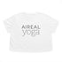 AIReal Yoga Cropped Tee | Cropped Flowy Top, short sleeve, gold logo on back