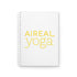 A lightweight spiral notebook designed for aerial yoga lovers and mindful movers. Clean white covers with bright, sunny yellow graphics—one side spelling AIREAL yoga in a modern, airy typeface, the other showing a silhouette of an aerialist suspended in a circular frame. The semi-gloss laminated covers feel smooth to the touch and protect your notes while the white metal spiral lets you fold the book back or remove pages easily. Inside, 128 ruled pages on 90gsm paper take ink and pencil without bleed, making it great for class sequences, personal practice notes, goal tracking, and sketching new flows. Compact and uplifting, it slips into a tote or mat bag and invites calm, focused writing before or after practice.